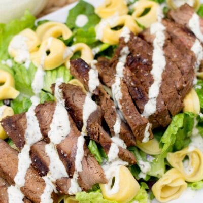 This steak and tortellini salad is filling and so yummy. It’s always a big hit, and is perfect for any BBQ or potluck alongside some other favorite salads like: Broccoli Salad, Potato Salad, or our classic Tortellini Salad.