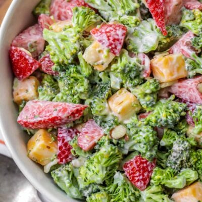 This strawberry broccoli salad is packed with fresh fruits and veggies, making it a perfectly tasty go to salad. Favorite Broccoli Salad and Broccoli Cauliflower Salad are also ultra tasty for all of you broccoli lovers!