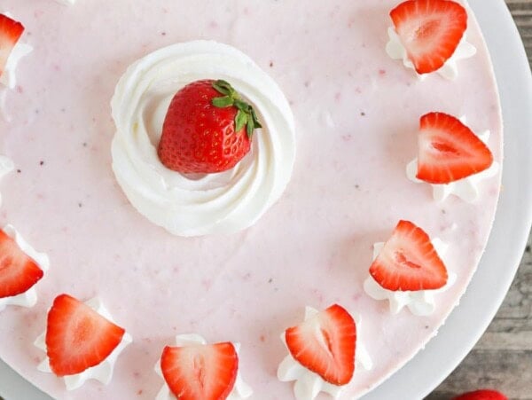 - optional garnish – Top with whole strawberries or Chocolate Covered Strawberries. If using sliced strawberries, don’t add until right before serving.