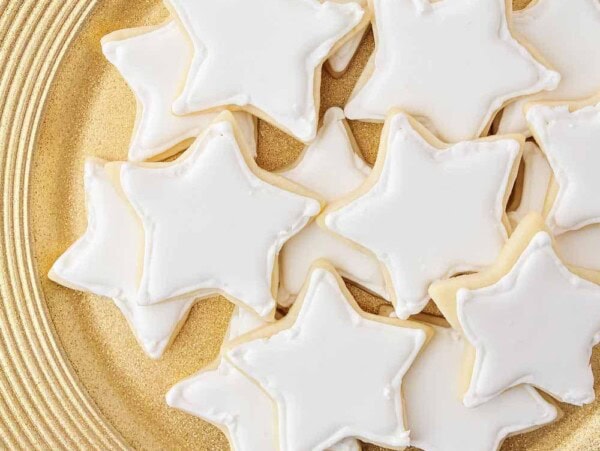 >> Royal Icing is made using meringue powder and confectioners sugar. Adjust this icing so that it “floods” or holds a shape. It can be used to create pictures and intricate designs on the top of the cookies. It dries smooth and hard.
