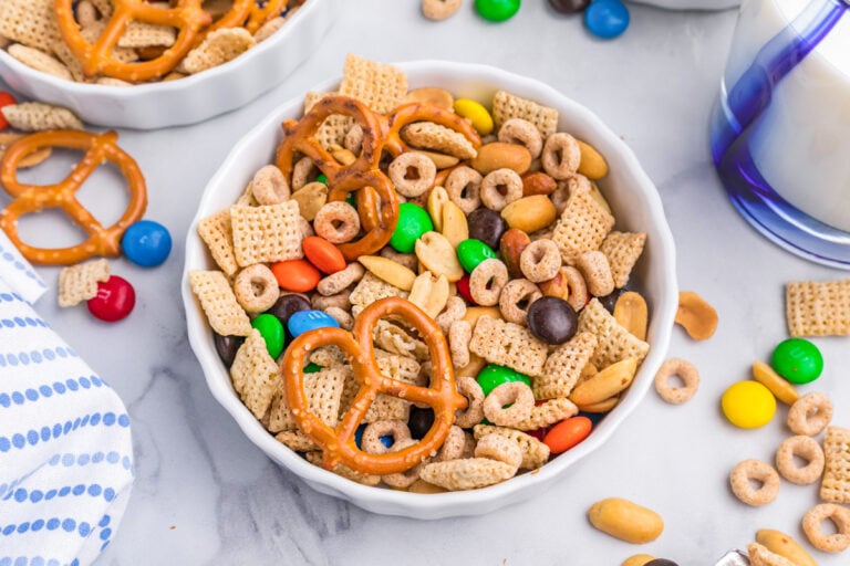 This snack mix is perfectly customizable and completely giftable! Try mixing in some holiday-themed M&Ms or small candies for special occasions. It’s a good alternative to our Chex Mix and Sweet Chex Mix.
