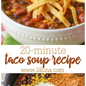 One of the quickest and easiest soup recipes you’ll ever try! If you like the Mexican flavors in this taco soup, you might also like Chicken Taco Soup, Tortilla Soup, or Enchilada Soup.