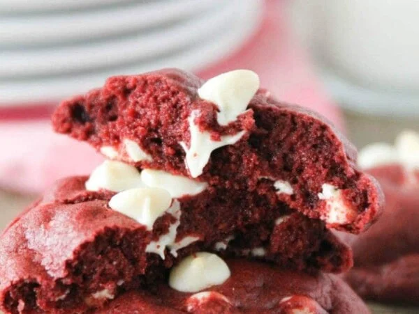 Valentines cookies are soft and chewy with chocolate pops of pink, red, and white M&M’s. They are Valentine’s perfection!