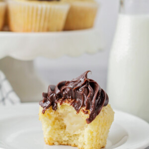 Smooth + rich Cream Puff Cake is a take on the popular cream puff dessert. Drizzle it in chocolate for a perfect bite!